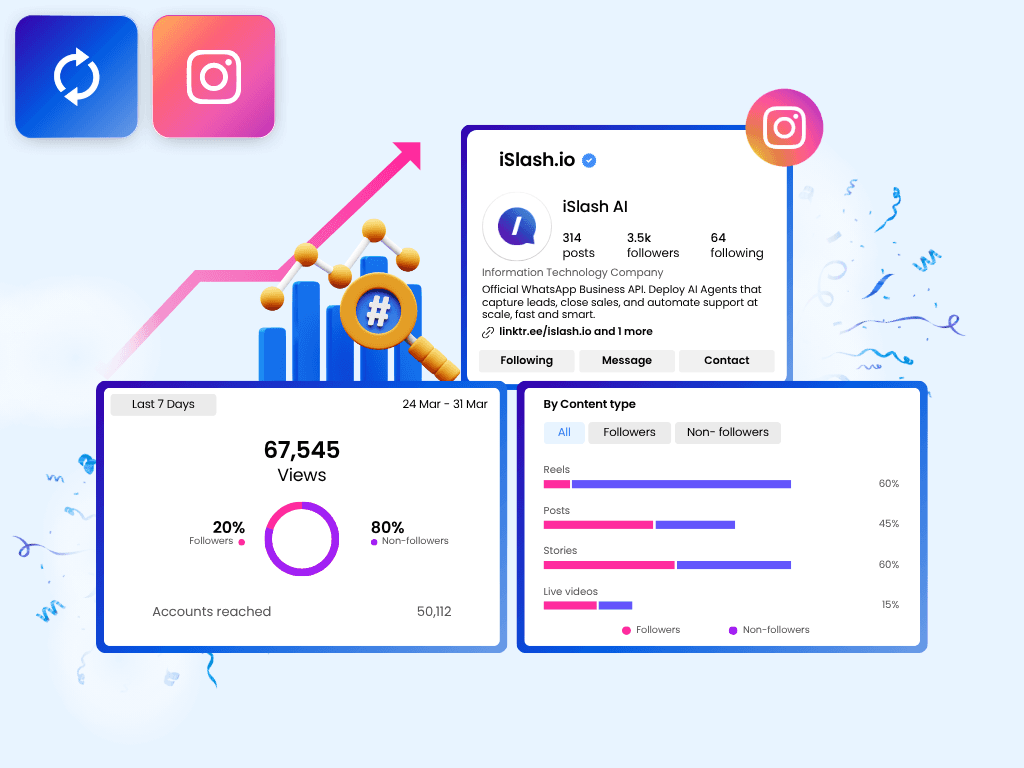 While most marketers start their day logging into five different social accounts to check notifications, I prefer a streamlined approach. I keep two main windows open: Meta Business Manager for high-level content planning and my iSlash AI Dashboard.
