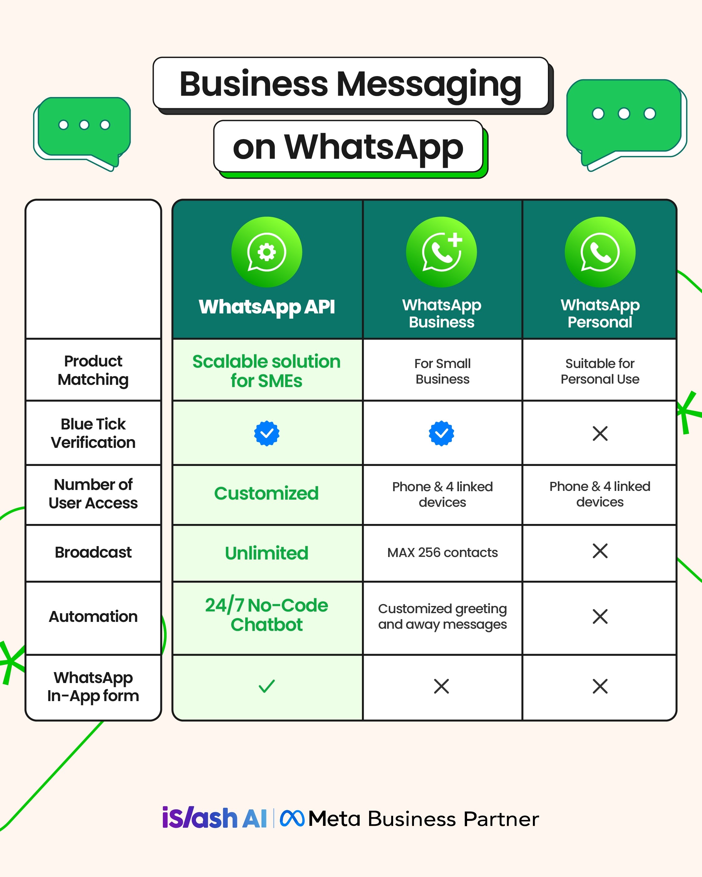 But before diving into automation and AI-powered engagement, it’s important to understand the three different types of WhatsApp accounts and how each one supports customer interaction differently. Let’s break them down.