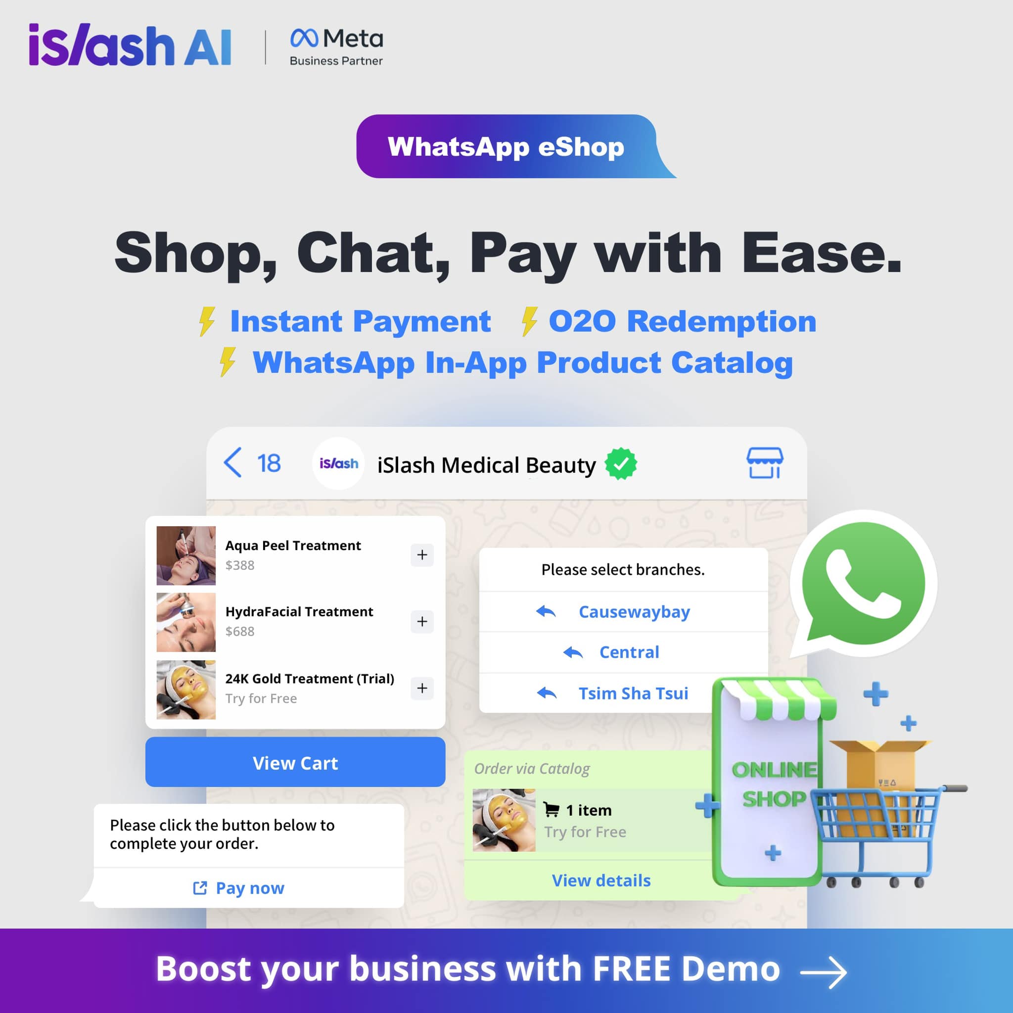 ii) Register for an account on the iSlash website and follow the instructions to set up your WhatsApp eShop. This process is very simple and takes only a few minutes.