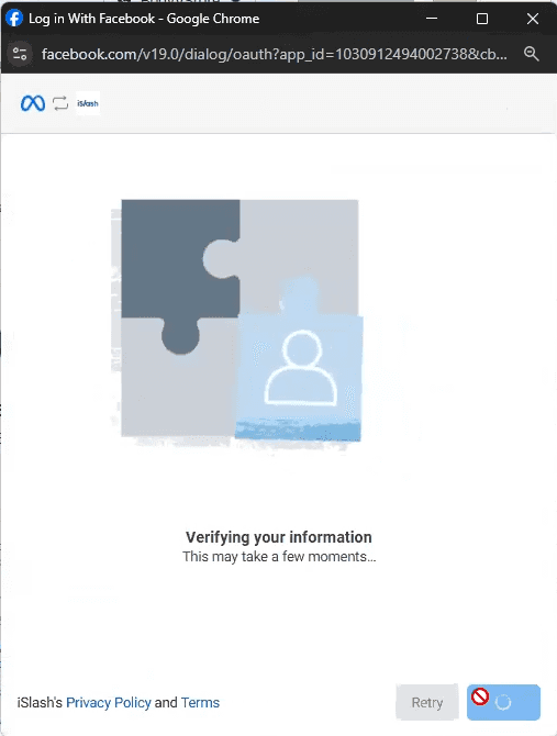An external window by Meta will pop up. You will either be required to log in to your Facebook account, or simply click “Continue as [Your Facebook Name]”.