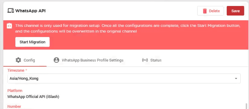 Platform *important : select "WhatsApp Official API (iSlash)"