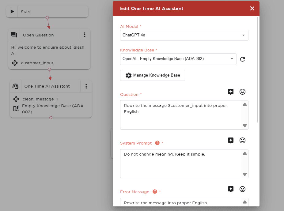 In this step-by-step user guide, we will walk you through setting up One Time AI Assistant to clean or transform customer messages: