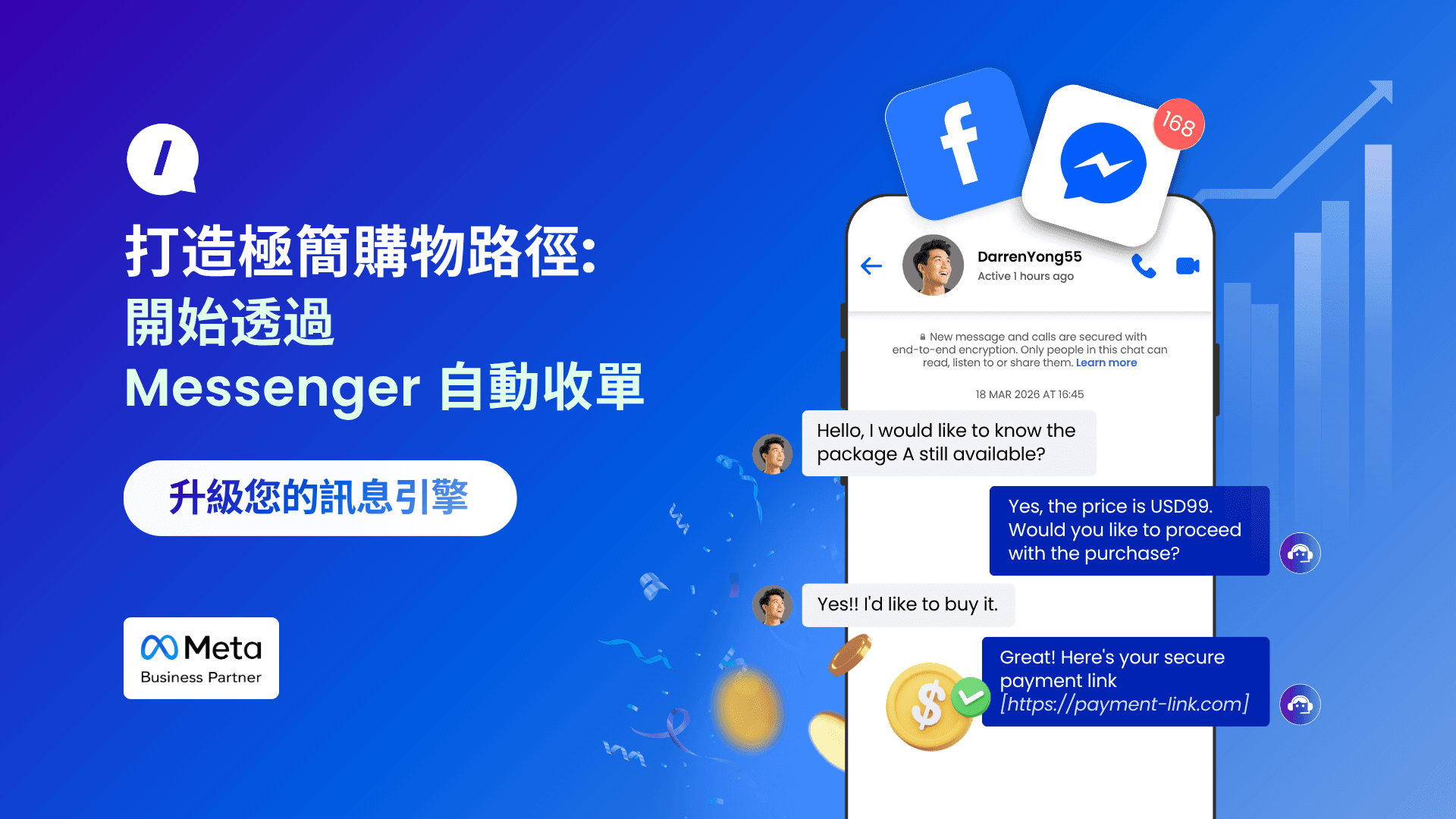 打造極簡購物路徑:開始透過 Messenger 自動收單