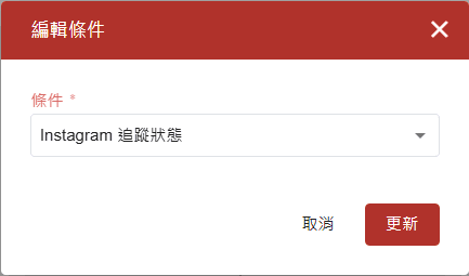 編輯條件(Instagram追蹤狀態) : iSlash AI系統檢索資料以判斷用戶是否為您Instagram頻道的追隨者。