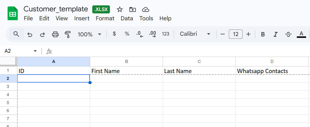 您將獲得一份客戶資訊 Excel 範本: