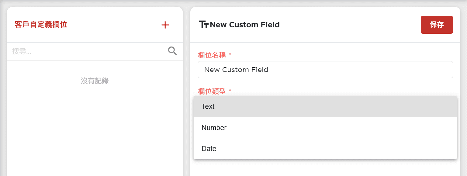 欄位類型 (Field Type):文本 (Text) | 數字 (Number) | 日期 (Date)